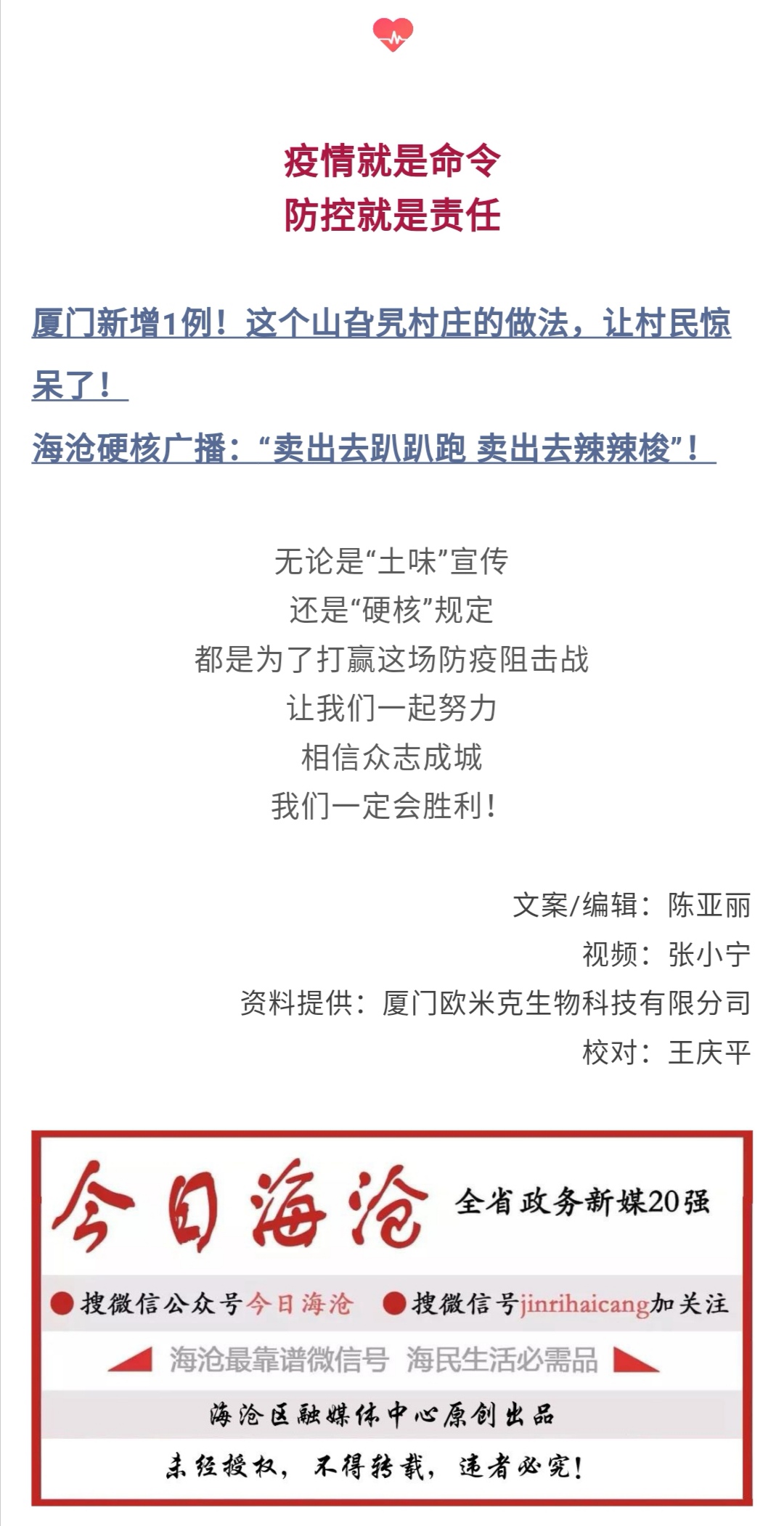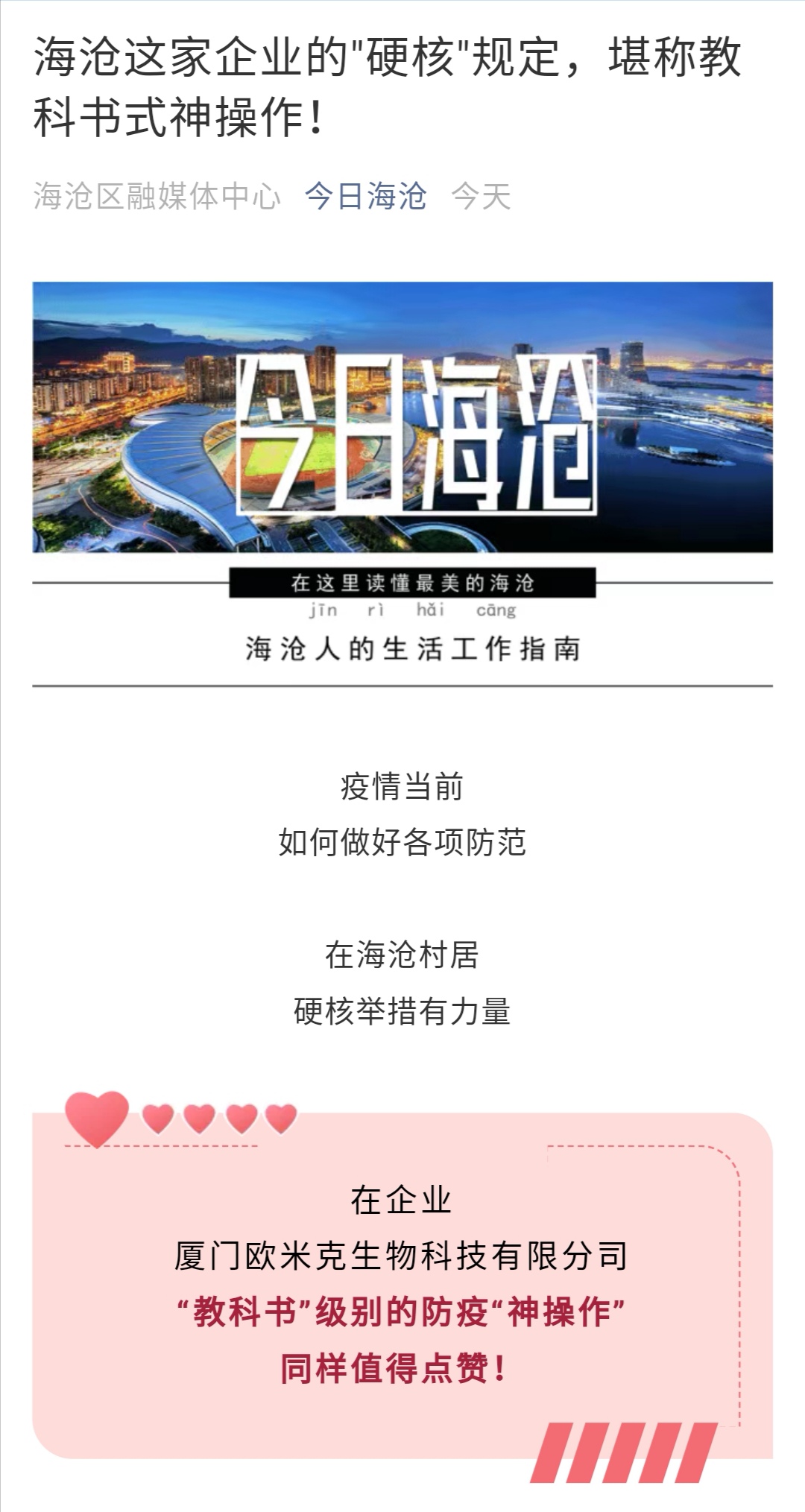 今日海沧---冠毒哪里跑!这个企业的“硬核”规定,堪比教科书!